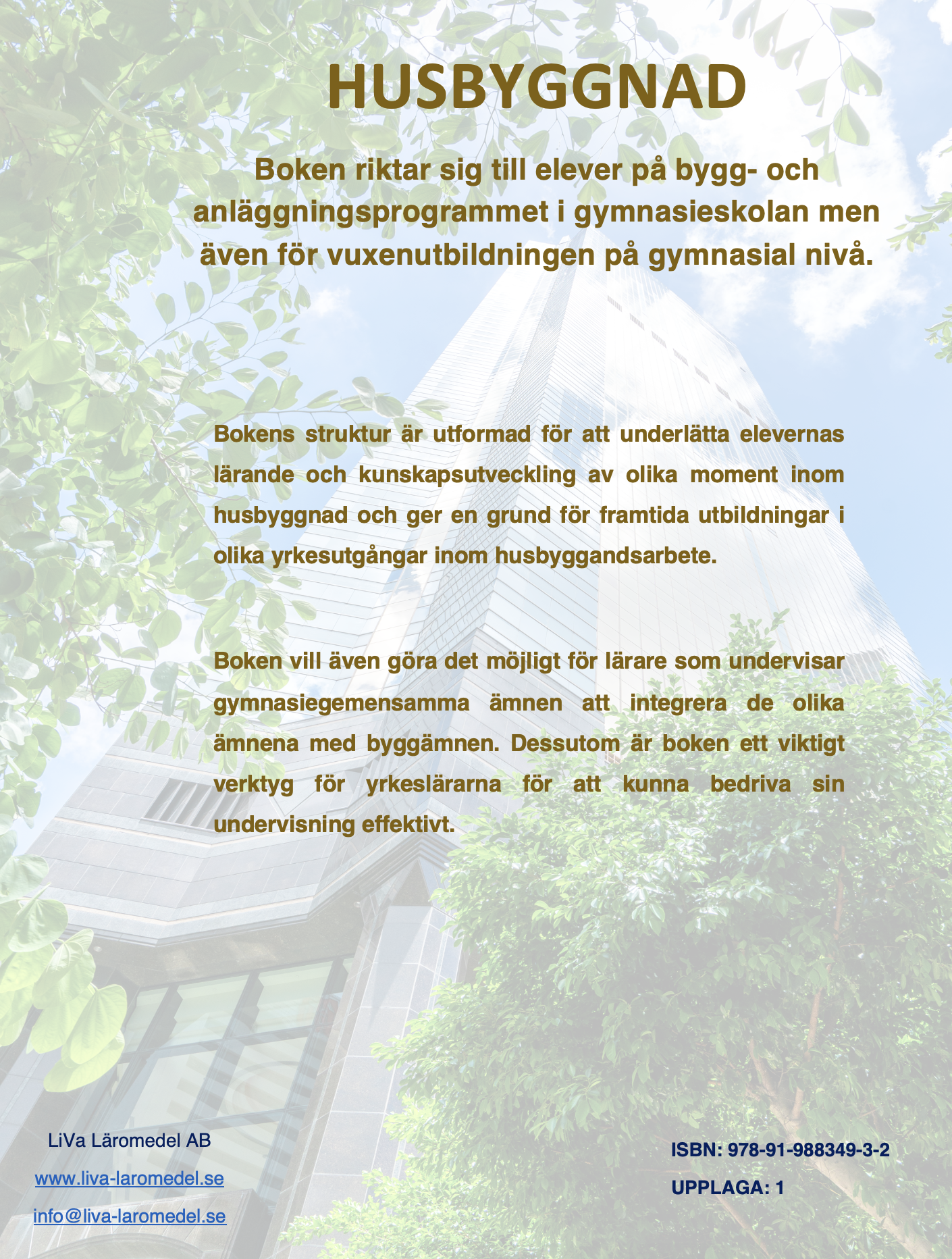 Observera att boken är anpassad till den nya reformen; GY-25, utifrån ämnesbetyg och till olika nivåer i ämnet husbyggnad.
