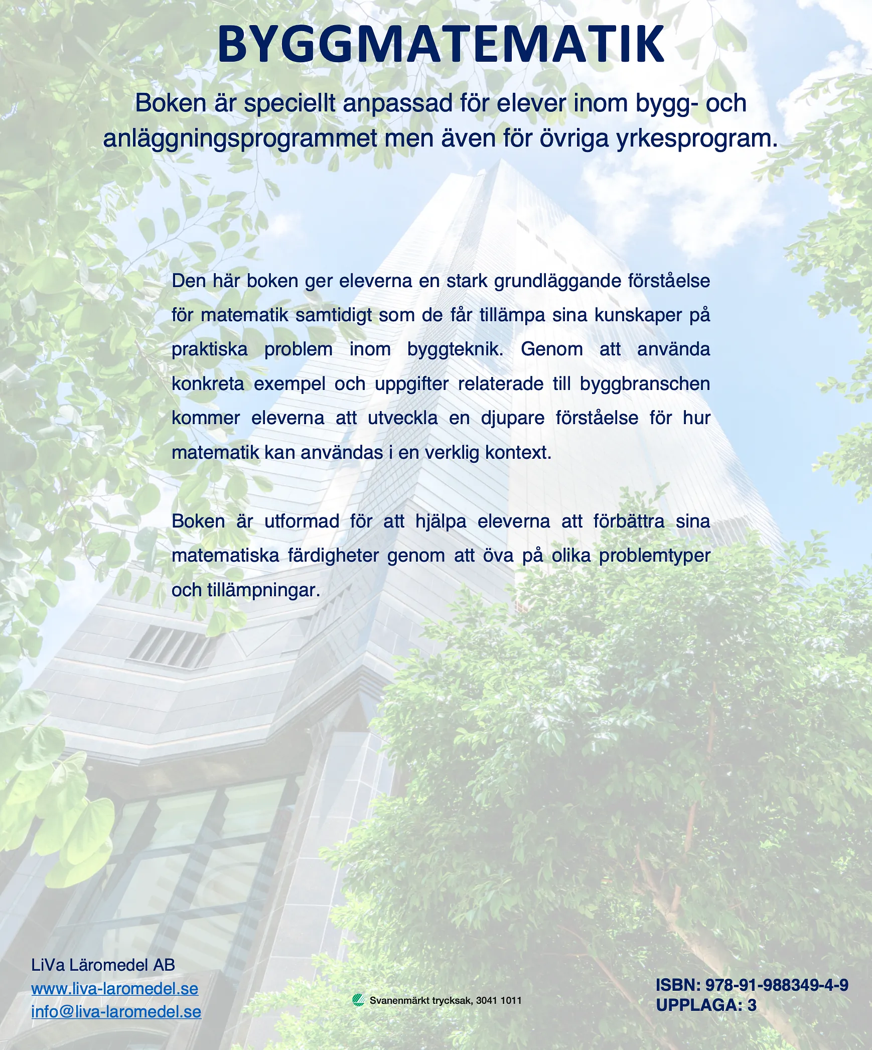 Boken är speciellt anpassad för elever inom bygg- och anläggningsprogrammet men även för övriga yrkesprogram.